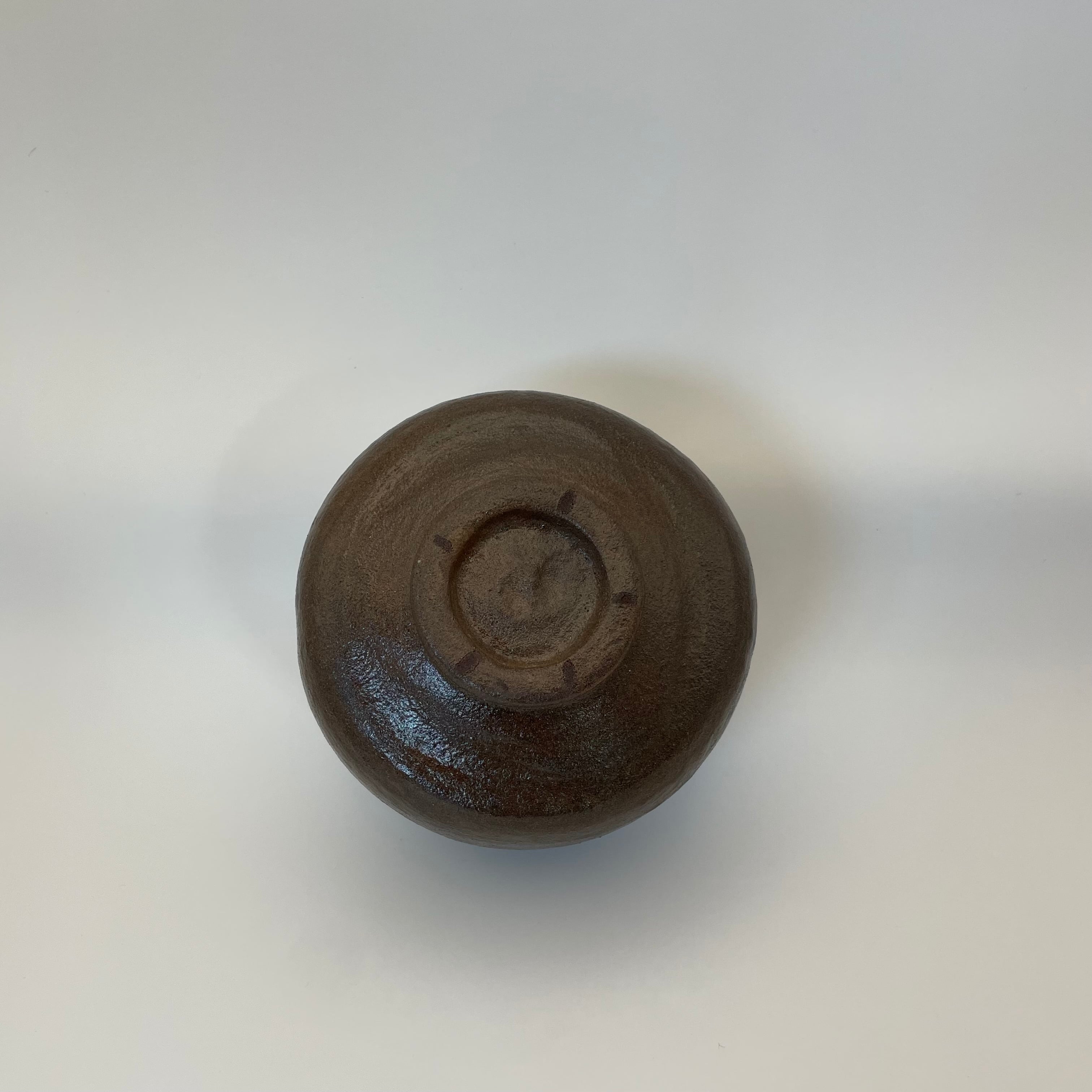 「禿」の作行きは、全体に滑らかに削り上げられその銘にふさわしく、穏やかな愛らしい趣きをみせている。口縁はやや波打ち、強く内に抱え込んでいる。高台は大振で力強く渦兜巾はない。