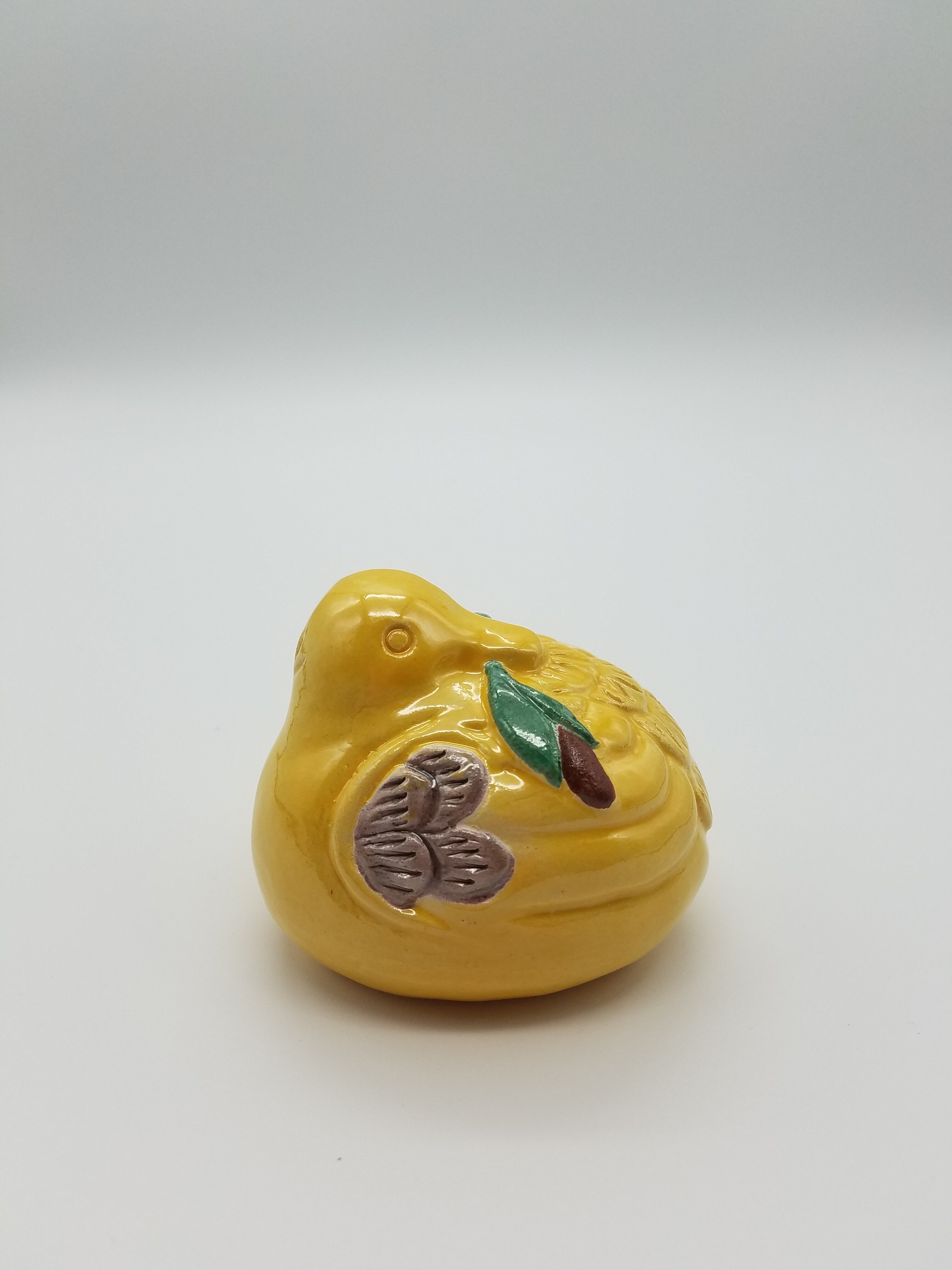 黄釉楽 花喰鳥 文鎮/ 書道/paperweight /ペーパーウェイト