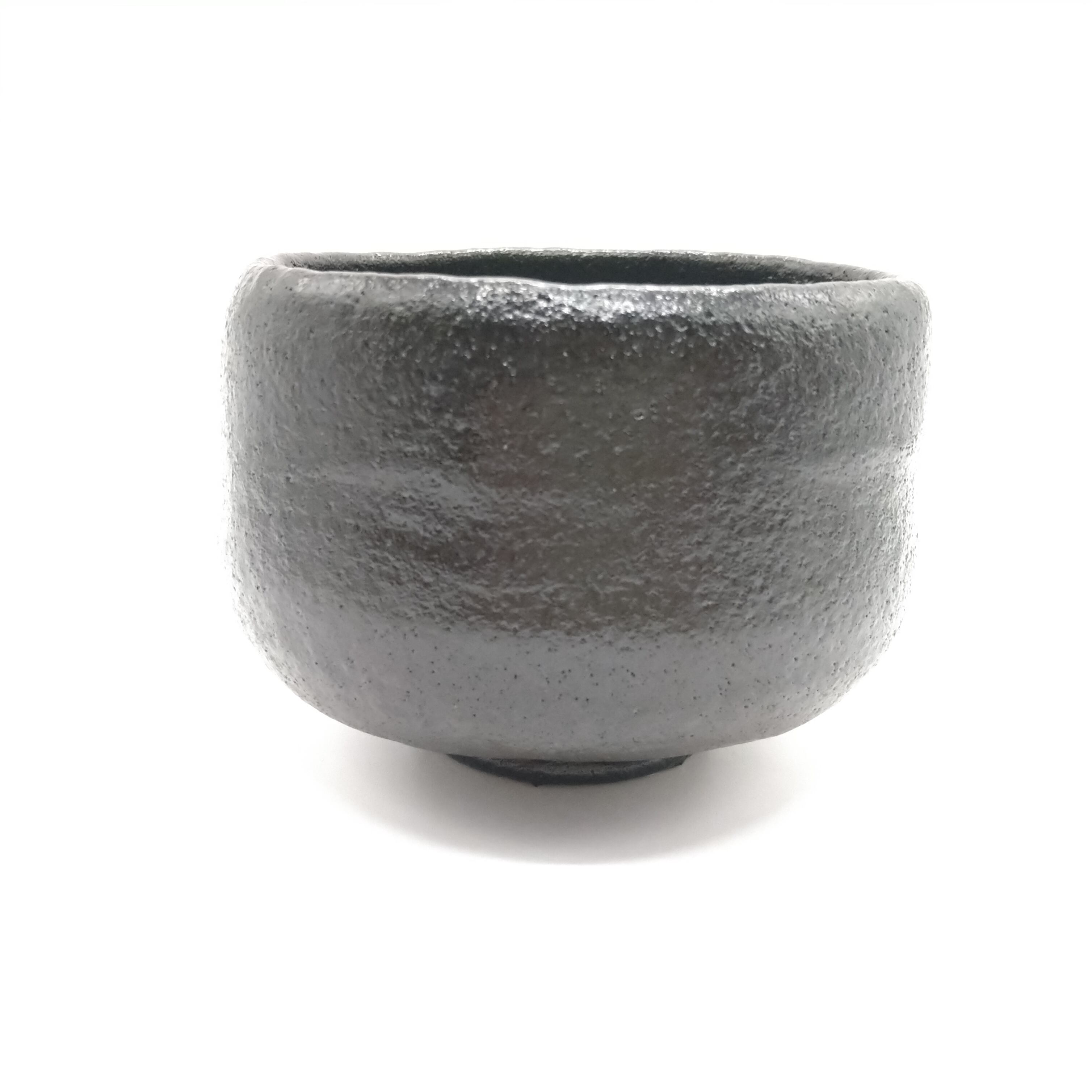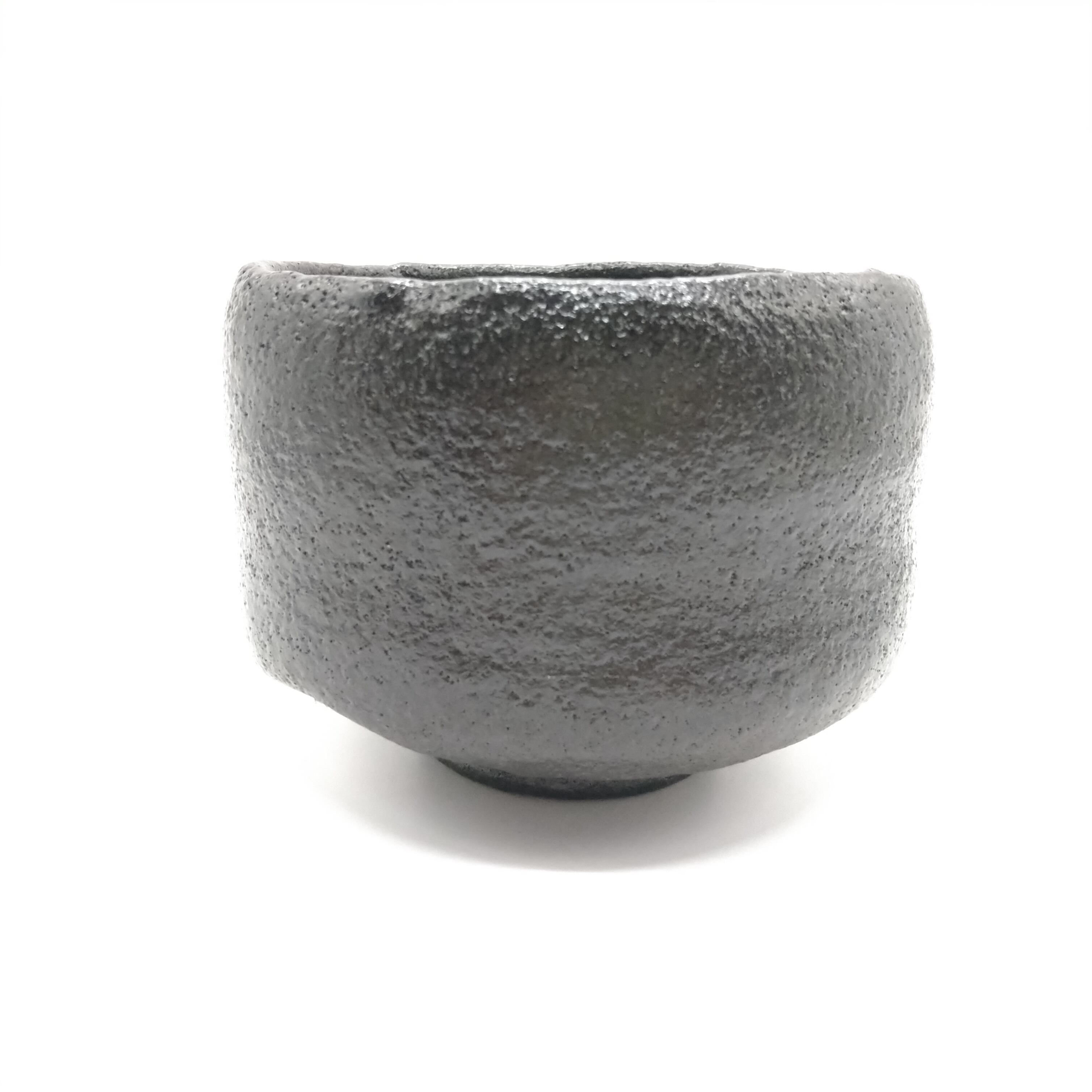 女性の小さな手にもすっぽりと収まる小振りな黒楽茶碗で、利休茶箱にちょうど入るくらいのサイズです。